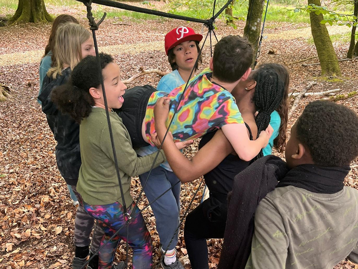 The next activity included the spiders’ webs and a slack line and set challenges for the entire group. This really helped them to bond and gel together, and it was great to see how inclusive they were with everybody having a role to play in solving the problems.