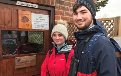 Tommy and Ellie stop off during their three day walk at the Milford upon Sea Bird Observatory in Keyhaven.