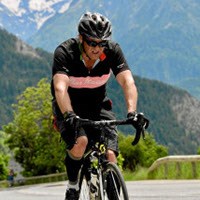 He has to find a sufficiently challenging expedition or adventure each year to ensure that some fitness training occurs through fear of failure. It started with a two day run and mountain bike across Scotland several years ago, followed by a few Ocean triathlons & the Scottish Islands Peak race. Last year was the Haute Route ski tour and a cycle ride up the 21 bends of Alp d'Huez (pictured - in pain!)