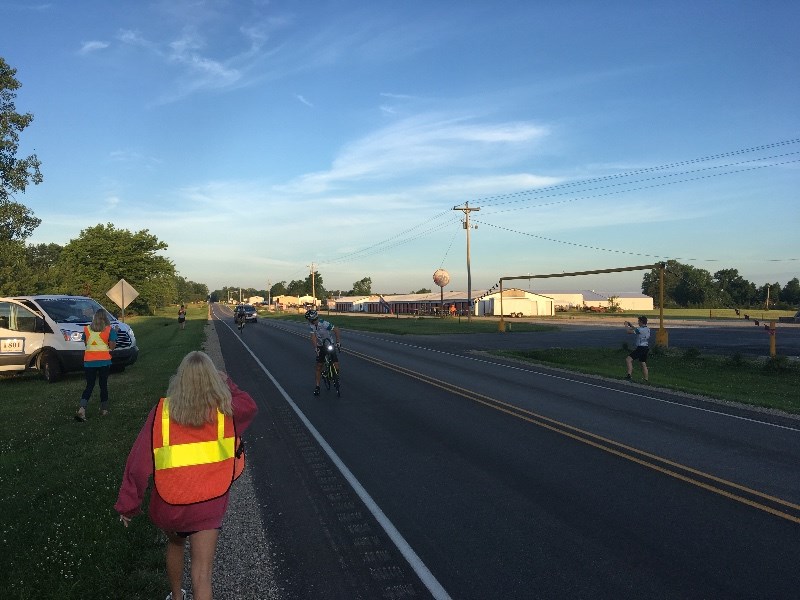 Andy, Kevin, Nicky and Stuart are currently riding through Indiana and the team now has about 750 miles to the finish line. Terrain continues to be gentle rolling hills, which is a nice warm up for the Appalachian Mountains in West Virginia which has some of the toughest climbing of the whole race. There is a storm forecast for tomorrow so we are keeping our fingers crossed.