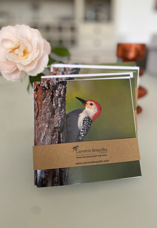Inside left blank for your own personal message. Striking photograph of a Woodpecker captured by Cameron.