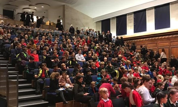 There was an incredible turnout for the annual Cameron Bespolka Memorial Talk, hosted by Winchester College. We were thrilled to see about 420 local primary school children from seven different schools attend.