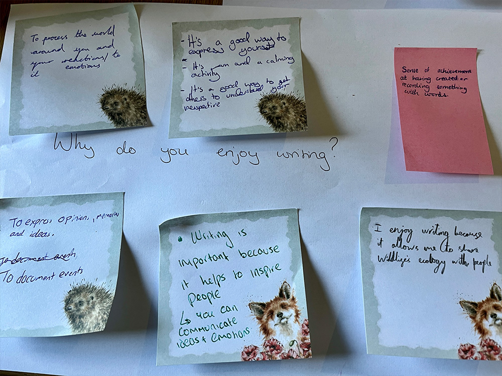 They also learned about nurturing creative connections to nature. Jane from the RSPB team led a nature art and writing session that encouraged participants to reflect on their experiences, explore different ways of engaging with the natural world, and prioritise their mental wellbeing.