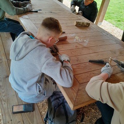 They spent the day engaged in numerous outdoor activities, namely collecting branches and building dens, various team building activities and whittling tent pegs and mallets (which they used to make their dens). All activities were brilliantly led by the RSPB.