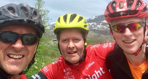 He has to find a sufficiently challenging expedition or adventure each year to ensure that some fitness training occurs through fear of failure. It started with a two day run and mountain bike across Scotland several years ago, followed by a few Ocean triathlons & the Scottish Islands Peak race. Last year was the Haute Route ski tour and a cycle ride up the 21 bends of Alp d'Huez (pictured - in pain!)