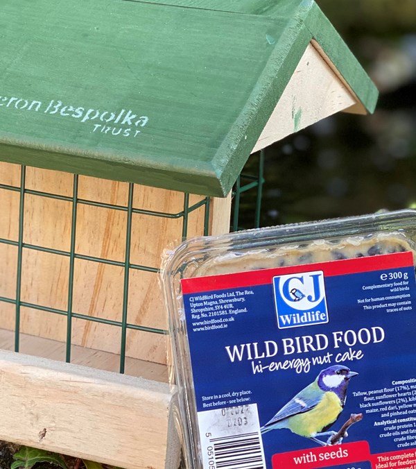 Wooden bird feeder and two hi-energy suet squares which are an excellent food source for birds, especially during colder months.