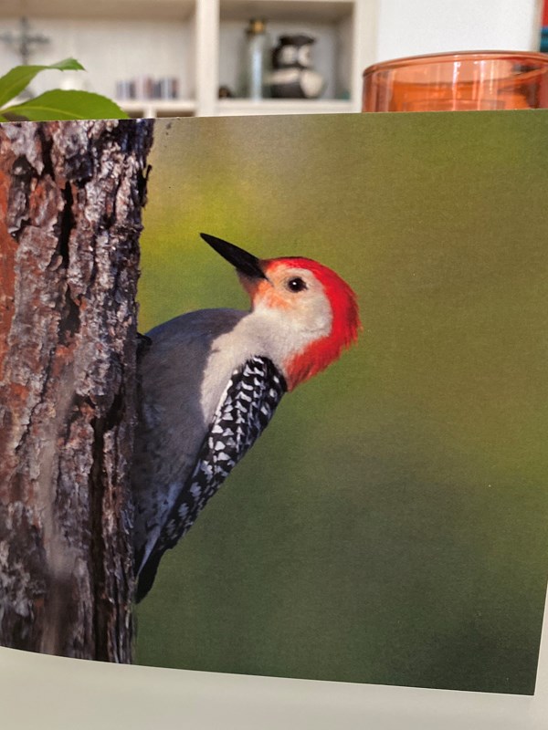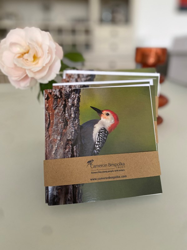 Inside left blank for your own personal message. Striking photograph of a Woodpecker captured by Cameron.