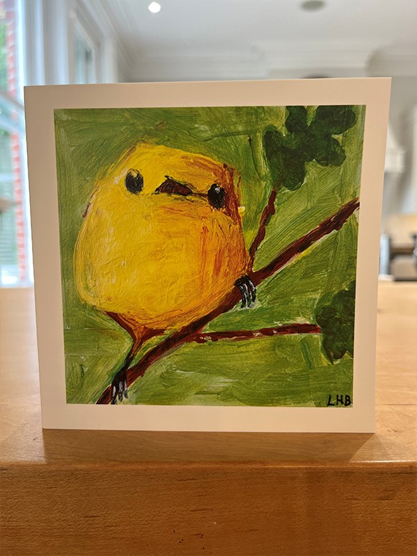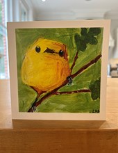 Inspired by the Yellow Warbler. Painted by Liv Hagen Bespolka. Inside left blank for your own personal message.